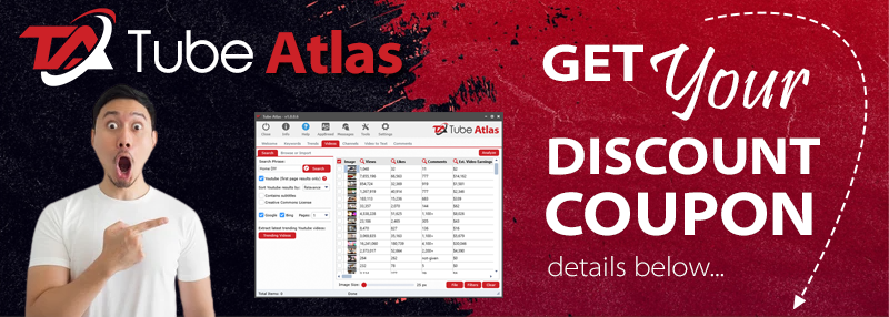 Tube Atlas is a powerful Youtube research & content extraction software. There are over 20 integrated tools for uncovering the information you need ... ⭐ Extract email leads from youtube videos Here are just 12 of the powerful built-in tools... PLUS .. you get 7 incredible bonuses! Bonus #1 - Online youtube description generator There are seriously a TON of amazing things you can do with Tube Atlas! Claim your $30 off coupon today before it expires. Enter the following coupon code at checkout: SALE30